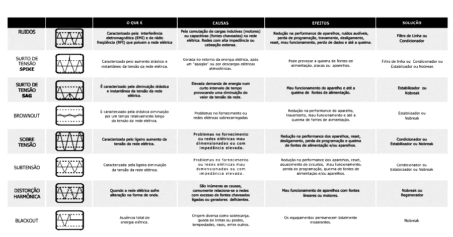 Devido a manobras na rede elétrica, manutenções preventivas ou corretivas, a energia nunca está na sua forma perfeita quando está acabando ou retornando. Essa oscilação pode queimar, ou danificar os equipamentos elétricos.